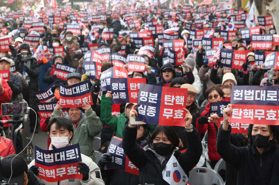 21일 헌법재판소 인근 윤석열 대통령 탄핵반대 집회에 참가한 2030청년세대와 지지자들 (사진: 연합뉴스)
