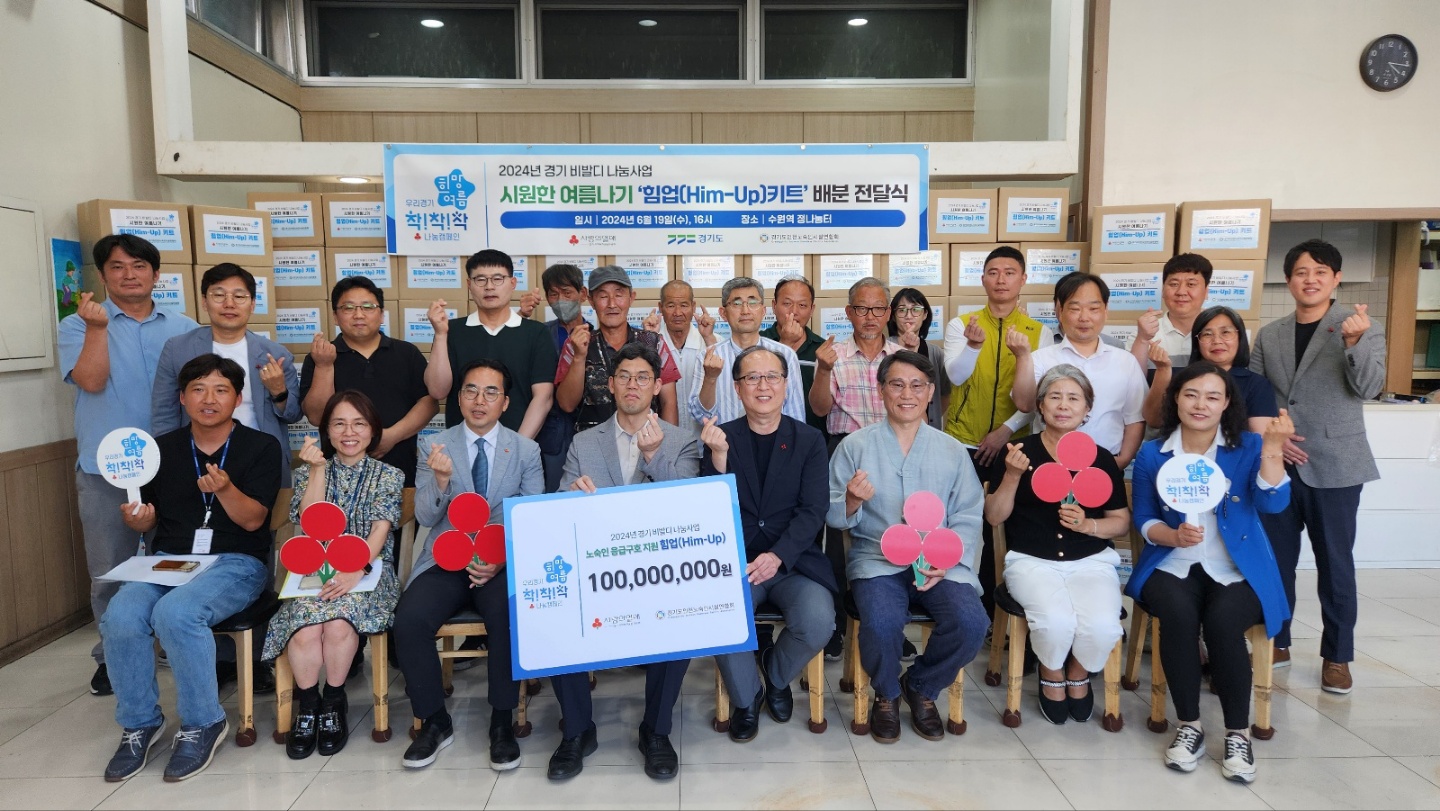 경기사회복지공동모금회와 경기도인천노숙인시설연합회가 지난 19일 노숙인 무료급식장소인 수원역 정나눔터에서 여름철 노숙인 안전사고 예방 및 보호 강화를 위한 힘업(Him-Up) 구호키트 배분 전달식을 진행했다.