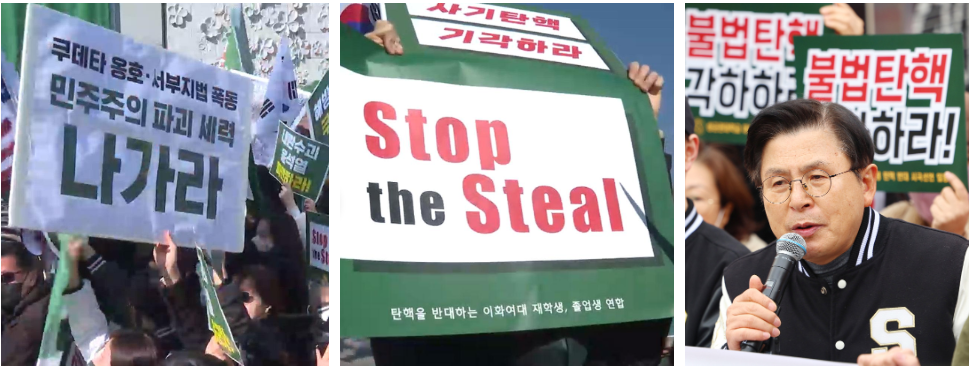 좌측부터 28일 이화여대 탄핵찬성집회, 이화여대 탄핵반대집회, 성균관대 탄핵반대집회 황교안 전 국무총리 (사진: 연합뉴스)