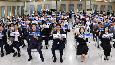 지난해 10월, 부천시 오정구청 대강당에서 열린 ‘부천 과학고 설립 추진을 위한 시민설명회’에서 시민들이 손피켓을 들고 과학고 유치를 기원하고 있다. (사진: 부천시)
