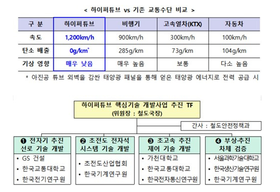 이를 위해 국토부는 민간 전문가들이 참여하는 태스크포스를 운영하며, 기술 개발의 내실을 기할 계획이다. TF 위원장은 국토부 철도국장이 맡는다. 윤진환 국토부 철도국장은 “이번 연구개발은 하이퍼튜브 기술의 첫 발걸음”이라며 “지방소멸 위기 해소와 지역 균형발전에도 기여할 것”이라고 밝혔다.