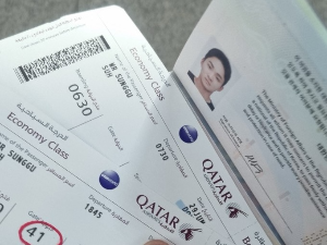 공항에 도착한 지 1시간이 채 안 되어, 친구에게 전화를 걸었다. 탑승 수속을 어떻게 하는지 헷갈려서! ‘참, 외국 가는 비행기 정말 오랜만이지’