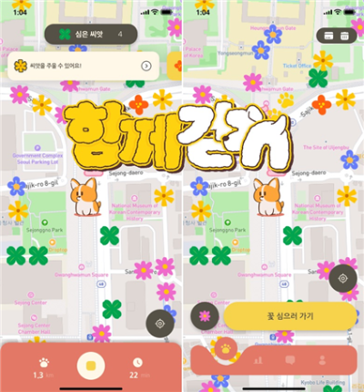‘함께걷개’는 반려견과 함께 걷는 반려가족을 위한 맞춤형 헬스케어 솔루션으로, 단순한 산책 이상의 특별한 경험을 제공한다. 이 앱은 일정 거리를 걸을 때마다 꽃이 피어나는 ‘게이미피케이션’ 요소를 추가해 반려인이 반려견과 함께 성취감을 느끼며 즐길 수 있도록 설계됐다. 헬스케어 솔루션에 게임 요소를 추가함에 따라 산책이 단순한 운동이 아닌 반려견과 교감하는 더욱 의미 있는 시간이 되도록 ‘함께 성취하는’ 경험을 강조했다.