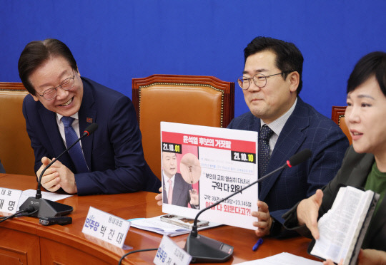 더불어민주당 이재명 대표가 27일 국회에서 열린 최고위원회의에 참석하고 있다 (사진: 연합뉴스)