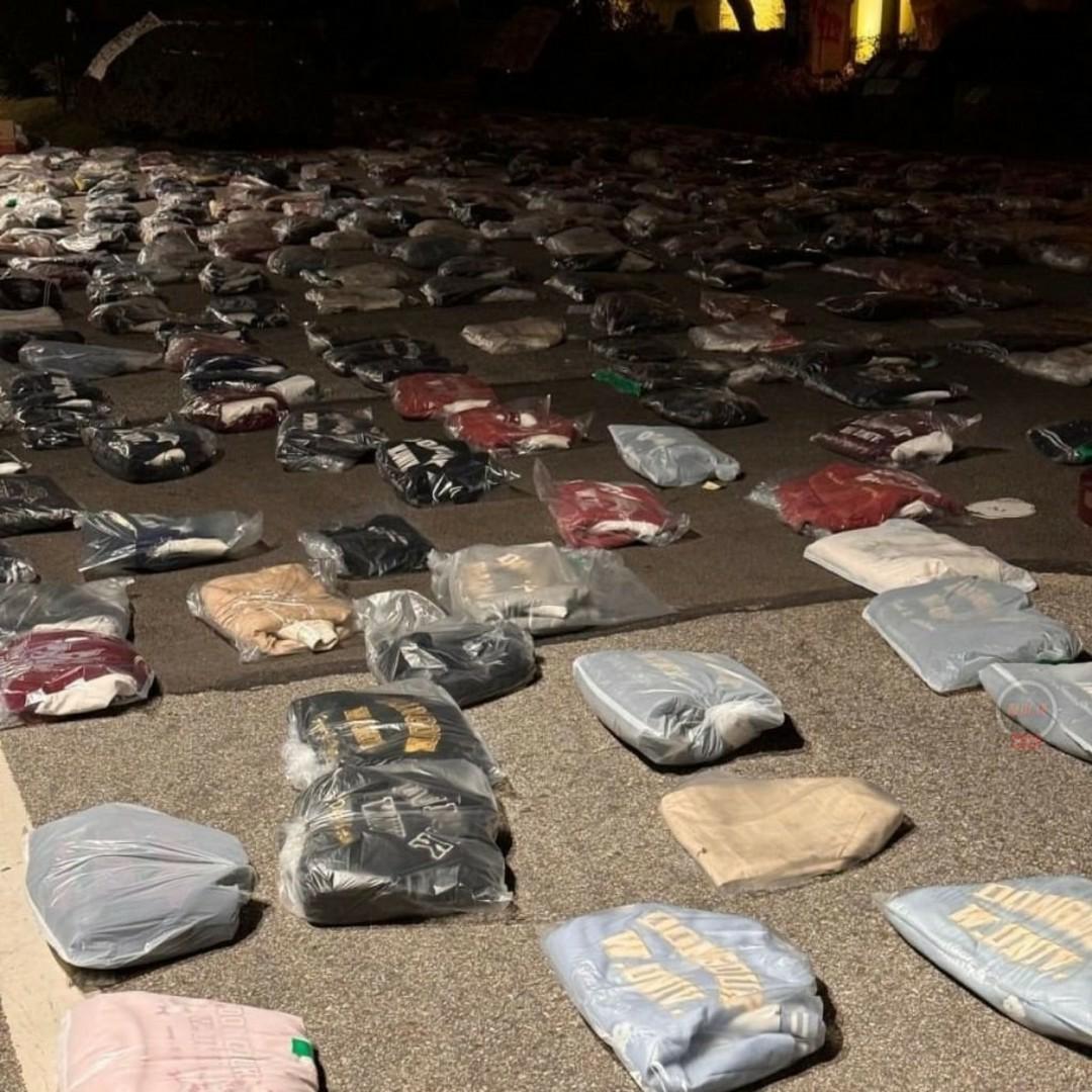 지난 14일 동덕여대 시위현장에 비가 내리자 시위에 참여한 학생들이 과잠바를 비닐봉투에 넣고 자리를 피한 모습 (출처: SNS 갈무리)