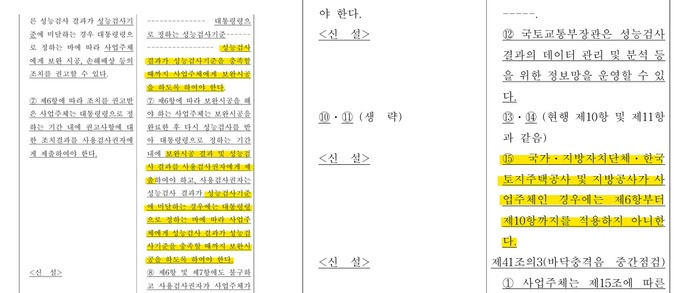 그러나 개정안에서 공공주택에 대한 성능검사 보완 의무를 적용하지 않겠다고 명시한 부분에 대해 업계의 반발이 일고 있다. 개정안은 국가, 지방자치단체, LH(한국토지주택공사), 지방공사 등의 사업주체가 추진하는 사업에 대해서는 성능검사 보완시공 의무화를 적용하지 않도록 하고 있어 논란을 일으킨 것이다. 업계는 공공주택이 모범을 보여야 하며, 이를 통해 시행착오를 공유하고 민간에 적용하는 방식이 바람직하다는 입장이다.