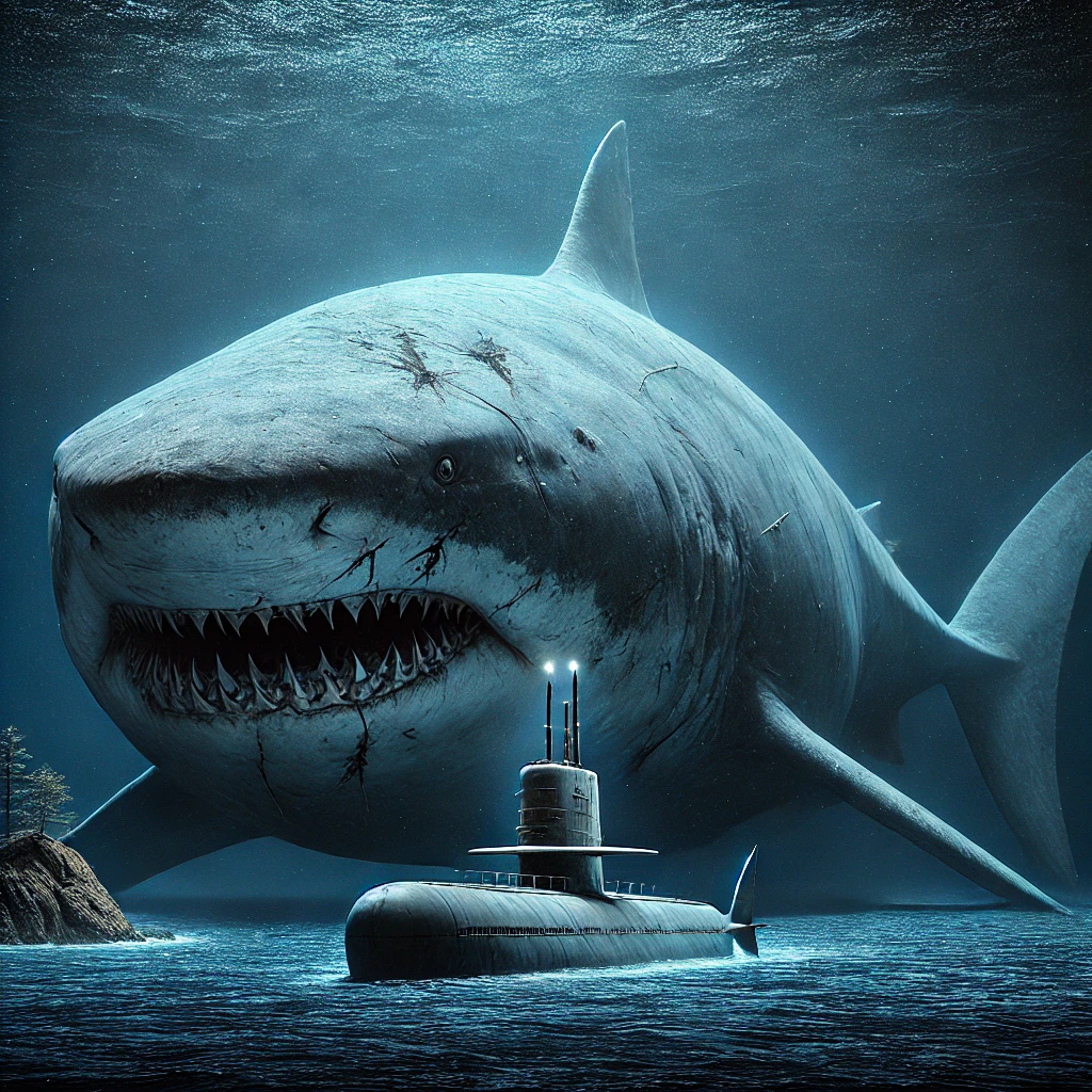 며칠간 아무런 특이점을 발견하지 못하던 중, 팀은 수심 2,000m 아래에서 이상한 소음을 감지했다. 그것은 마치 깊고 웅장한 포효 같았다. 순간, 잠수함 주변이 어둠으로 덮였다. 누군가 조명을 비추자, 어마어마한 크기의 상어가 모습을 드러냈다. 눈동자는 유리알처럼 차갑고, 이빨은 칼날처럼 날카로웠다. 그 크기는 잠수함을 한입에 삼킬 정도로 거대했다.